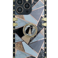 Geometric Glitter Marble iPhone Case With Ring