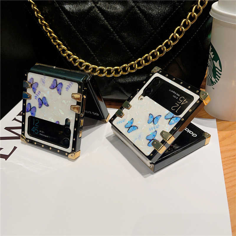 Opal Shell Butterfly Print Galaxy Z Flip 3/4/5/6 Case with Ring
