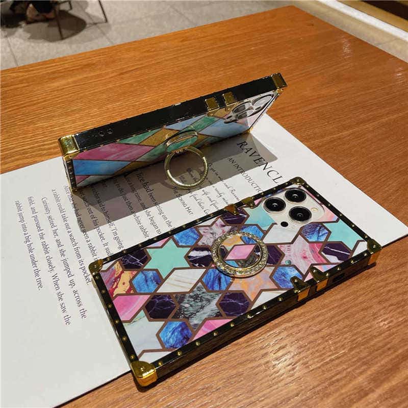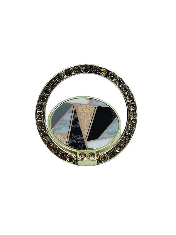 This elegant and sophisticated Geo Marble Metal Phone Ring with circled rhinestones, designed to elevate your mobile device to a whole new level of refinement and style. This phone ring is incredibly easy to install and remove, without leaving any residue or marks on your phone. It is compatible with most phone cases and can be adjusted to any angle, providing you with the perfect viewing angle every time.