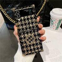 Houndstooth Galaxy Z Flip Phone Case with Rhinestone Ring
