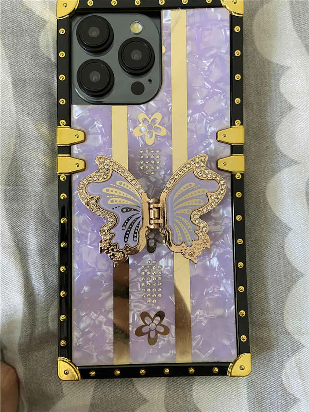 Opal Shell iPhone Case with Butterfly Phone Stand