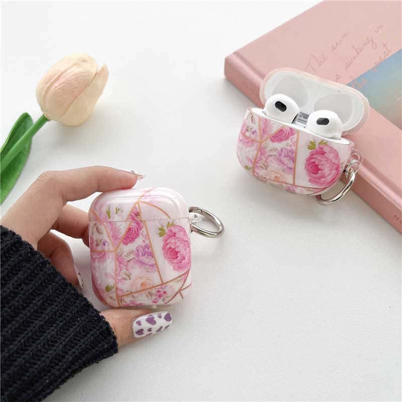 With its beautiful geometric pink floral design and practical metal finger ring, this AirPods case is the perfect accessory for anyone who wants to add a touch of elegance and convenience to their AirPods. Make a statement with this trendy and functional case and take your AirPods with you in style!