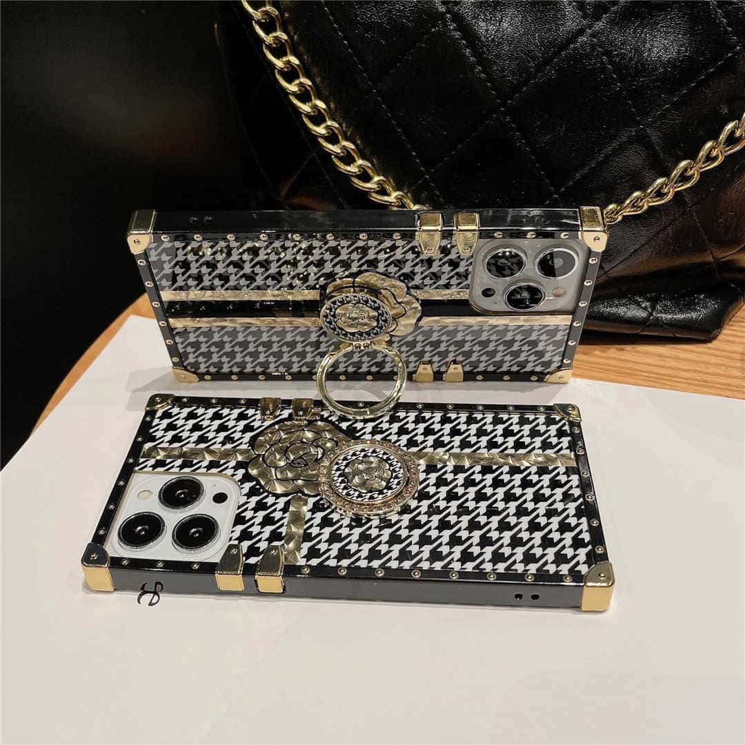 This sophisticated and stylish Metal Phone Ring with a stunning Houndstooth Floral pattern and circled rhinestones, designed to elevate your mobile device to a whole new level of elegance. This phone ring is incredibly easy to install and remove, without leaving any residue or marks on your phone. It is compatible with most phone cases and can be adjusted to any angle, providing you with the perfect viewing angle every time.
