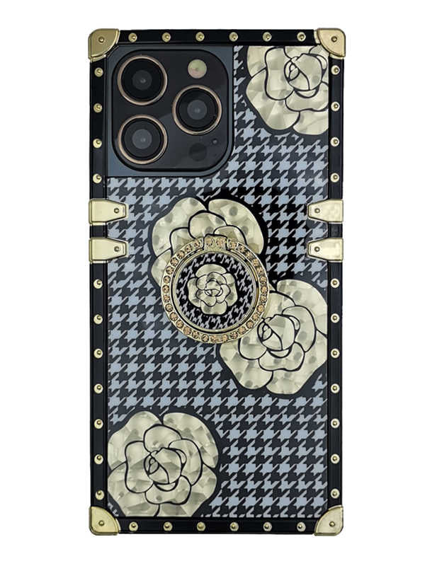 Featuring a circular arrangement of sparkling rhinestones on the ring, this phone ring adds a touch of glamour and sparkles to your device. The unique Houndstooth Floral pattern on the surface of the ring adds a touch of refinement and sophistication to your device