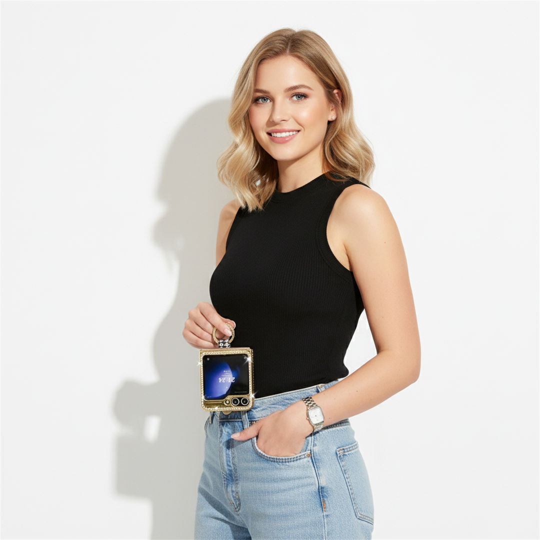 Glitter Samsung Z Flip Phone Case with Mirror Stand