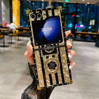 Shiny Gold Floral Galaxy Z Flip Phone Case with Ring