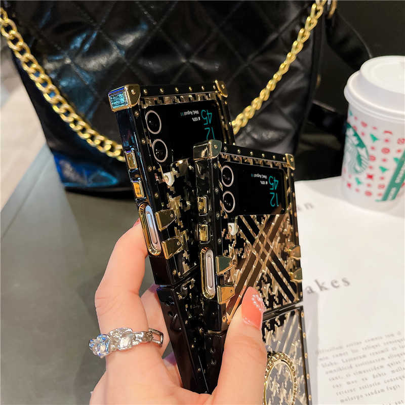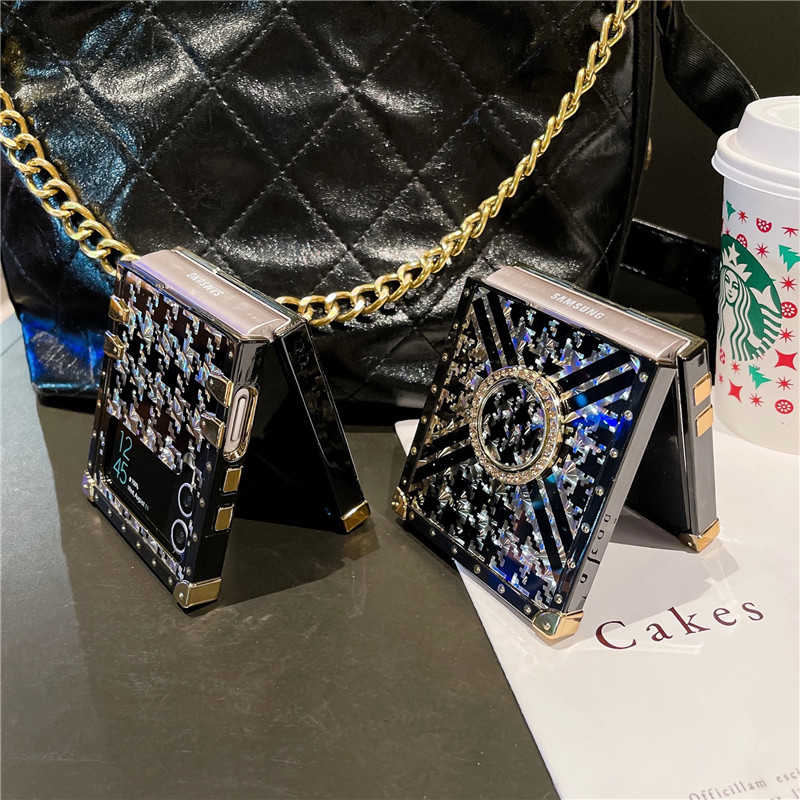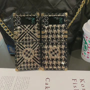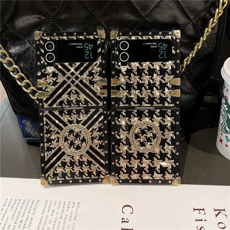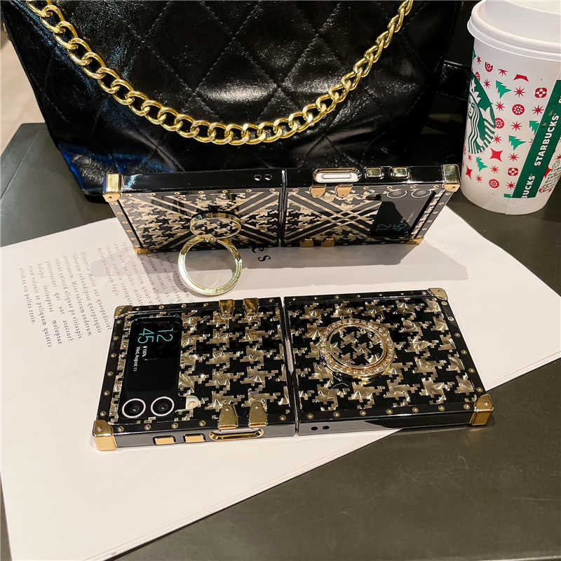 Houndstooth Galaxy Z Flip Phone Case with Rhinestone Ring