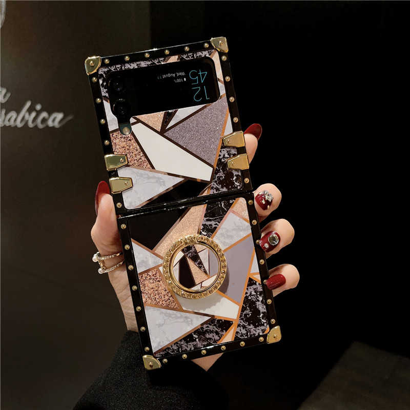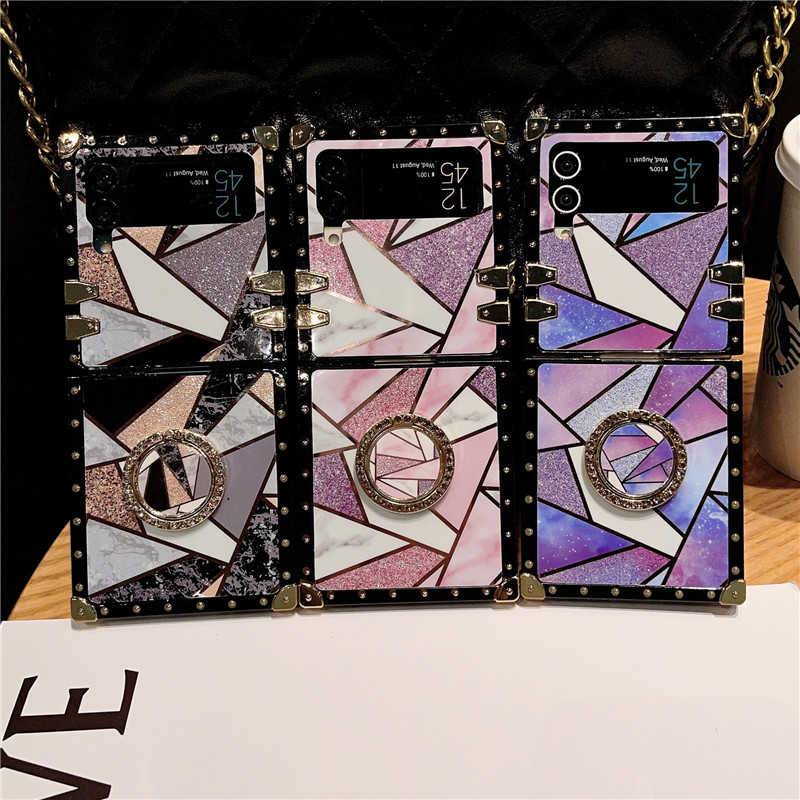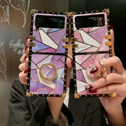 Geometric Colorblock Marble Galaxy Z Flip Phone Foldable Case