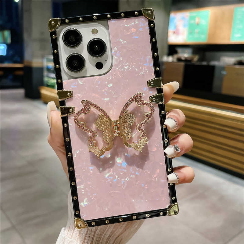 Great case! Amazing quality, feels super strong and protective. Love the opal shell pattern and butterfly phone stand on the back.